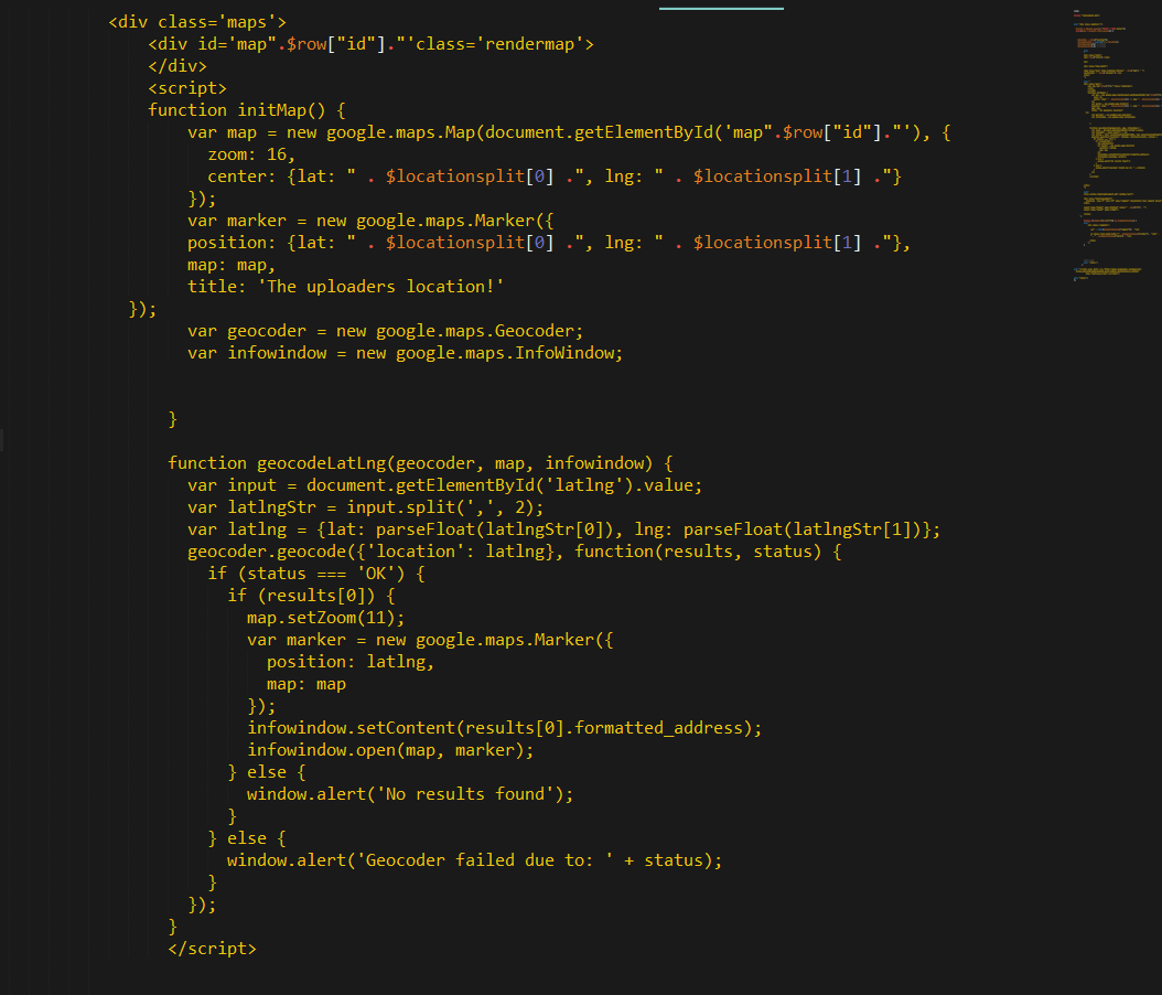 Here you can see how for example the googlemaps api is called and used combined with user information.